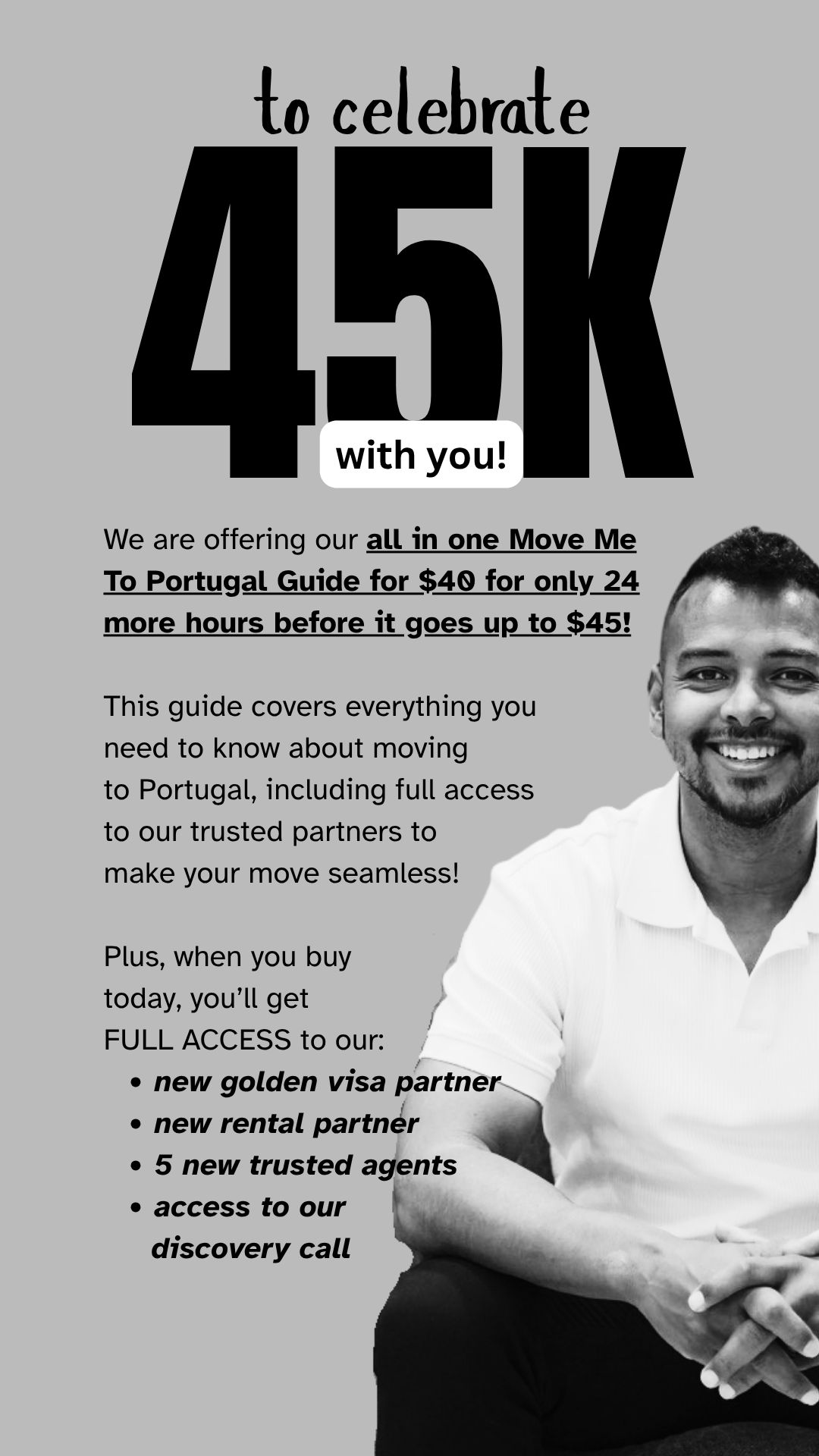 First of all… THANK YOU for being here and trusting us! We have reached 45,000 followers on the @movemetoportugal Instagram page and we are only getting started!