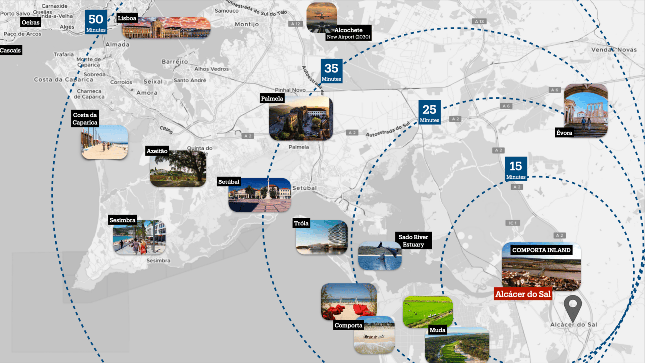 See how close Alcácer do Sal is to Lisbon, Comporta and the Alentejo
