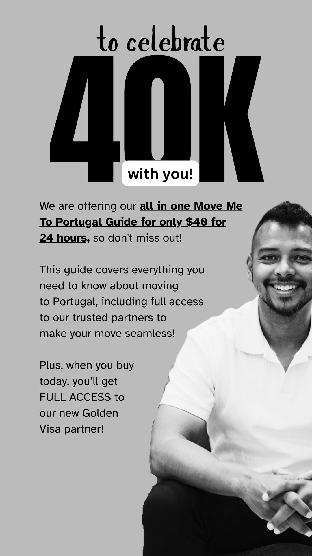We are offering our all in one Move Me To Portugal Guide for only $40 for 24 hours to celebrate reaching 40,000 followers on IG!