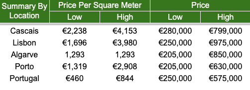 Sorted by Price Per Square Meter (all Portugal Average = β¬1,619)