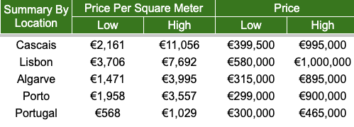 Sorted by Price Per Square Meter (all Portugal Average = β¬1,619)